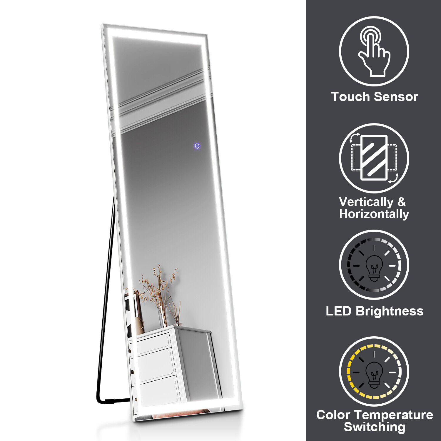 Free Standing Full Length Long Mirror with LED Light Bedroom Furniture 50x160cm