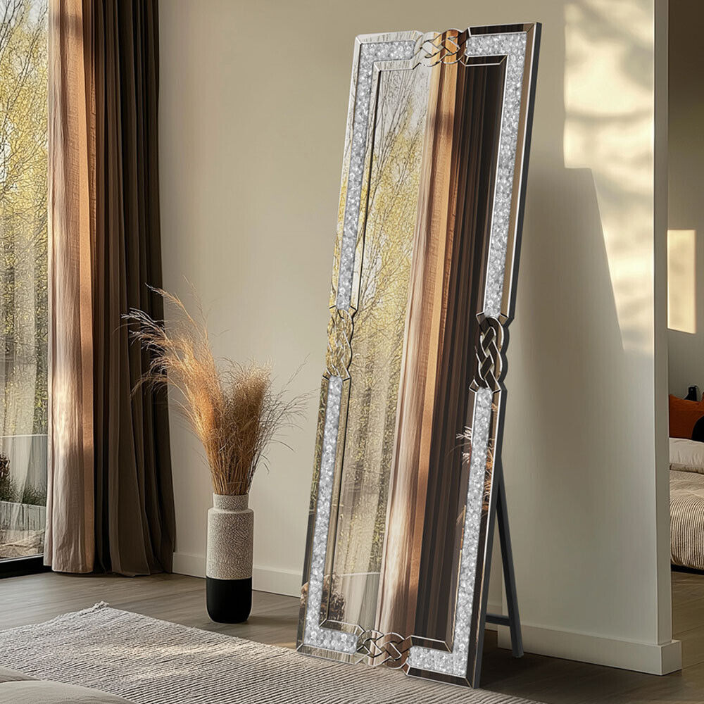 Diamond Crush Sparkly Silver Free Standing Full Length Mirror Full Body Mirror