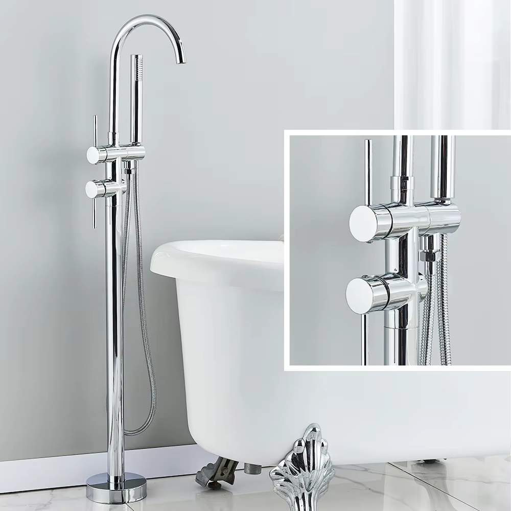 Bathtub Faucet Free Standing Tub Filler Hand Shower Mixer Tap Floor Mount