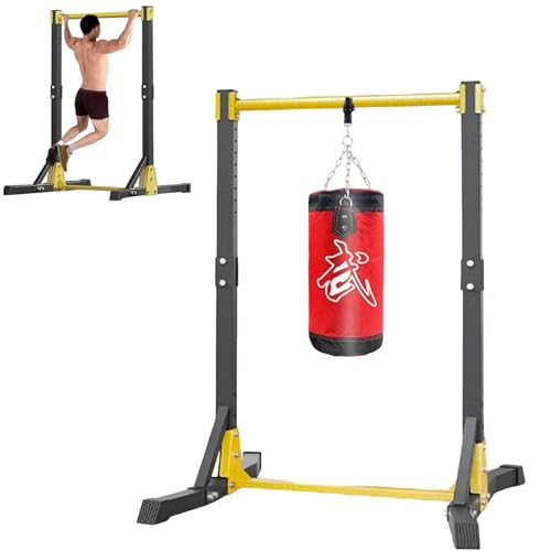 Fiauli Pull Up Station, 160-215cm Adjustable High Portable Pull-up Bar Station, Free Standing Pulling Up Bar for Home Gym, Pull Up Stand Station 400LBS with 11 Gears Adjustment Yellow