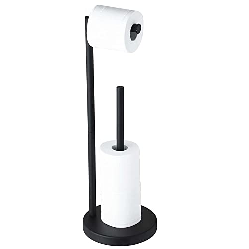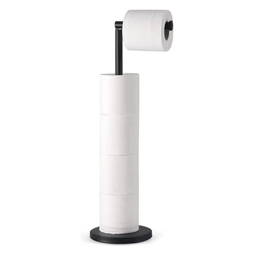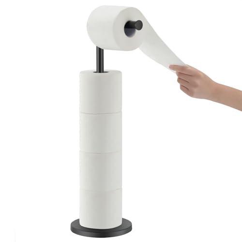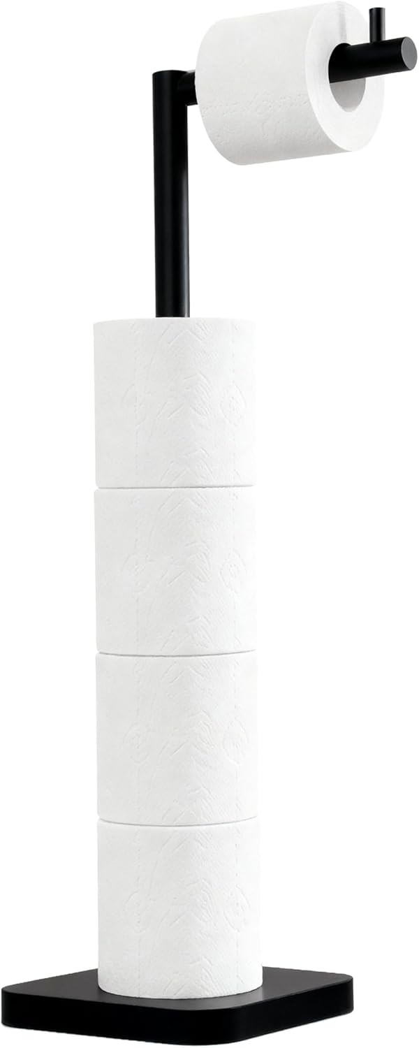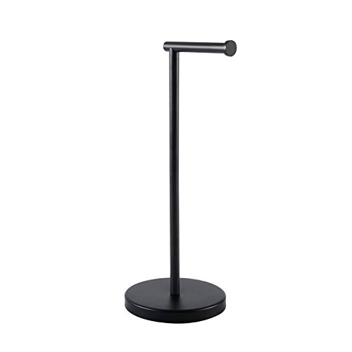 Free-standing Toilet Roll Holder with Heavy Base, Stainless Steel Toilet Roll Holder Stand with Matte Black Finish, Simple and Practical Toilet Roll Storage Dispenser
