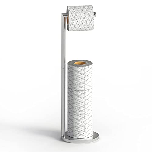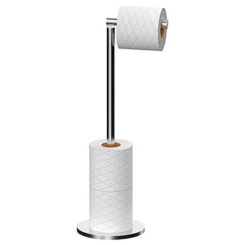 ROLABAM Heavy Weighted Toilet Paper Holder (with Reserve Function) Free Standing Toilet Paper Storage,Spare Toilet Paper Roll Holder Storage Stand for Bathroom Total Height 22.5" ,Chrome