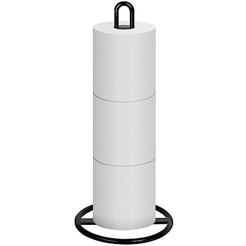 KASUNTO Toilet Paper Holder for Bathroom, Metal Free Standing Toilet Paper Storage with Rustproof, Tissue Paper Roll Stand for Bathroom Accessories (Black)