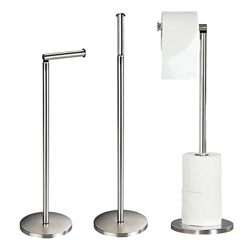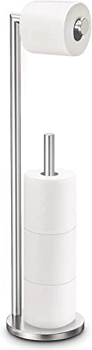 Free-standing Toilet Roll Holder, Stainless Steel Bathroom Roll Holder Stand, Anti Rust Pedestal Toilet Paper Storage Dispenser