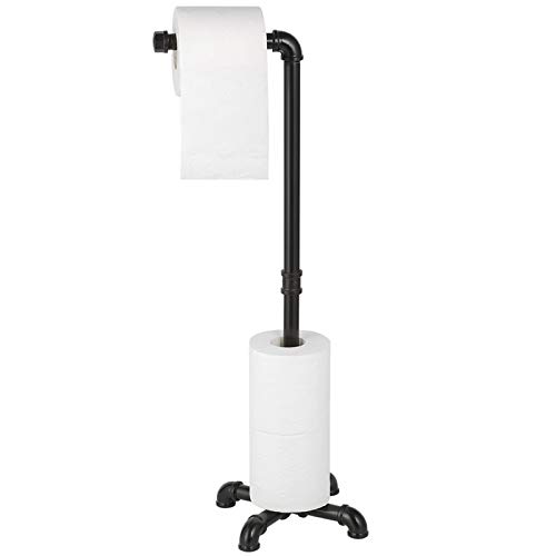 HouseAid Free Standing Industrial Pipe Toilet Paper Holder for Bathroom, Stand Rustic Iron Toilet Roll Holder with Reserve, Vintage Style, Matte Black