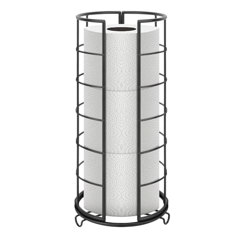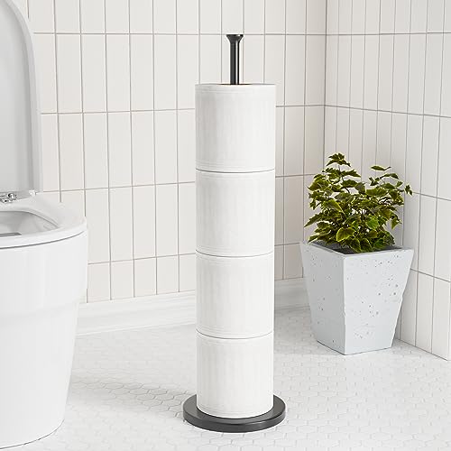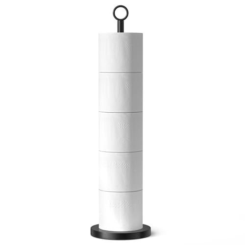 Black Toilet Roll Holder | Free-Standing Tall Black Steel Toilet Paper Holder | Stick Loo Roll 5 Roll Holder | Strong Loo Roll Tissue Holder Stand, Modern and Clean Design