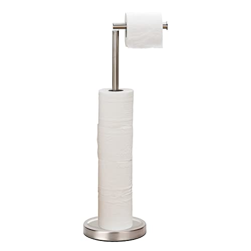 ROLABAM Heavy Weighted Toilet Paper Holder (with Reserve Function) Free Standing Toilet Paper Storage,Spare Toilet Paper Roll Holder Storage Stand for Bathroom Total Height 22.5" ,Brushed Nickel
