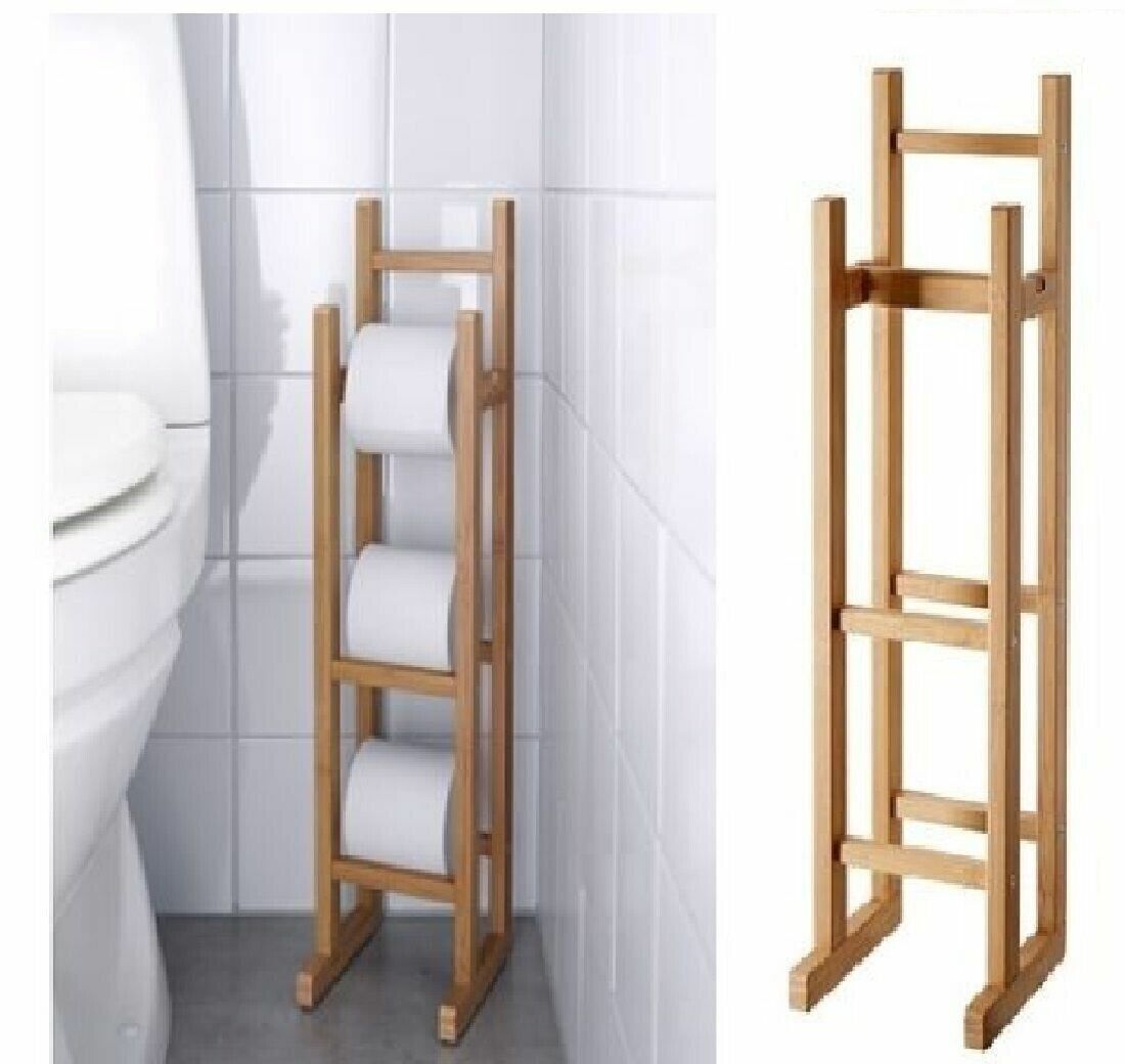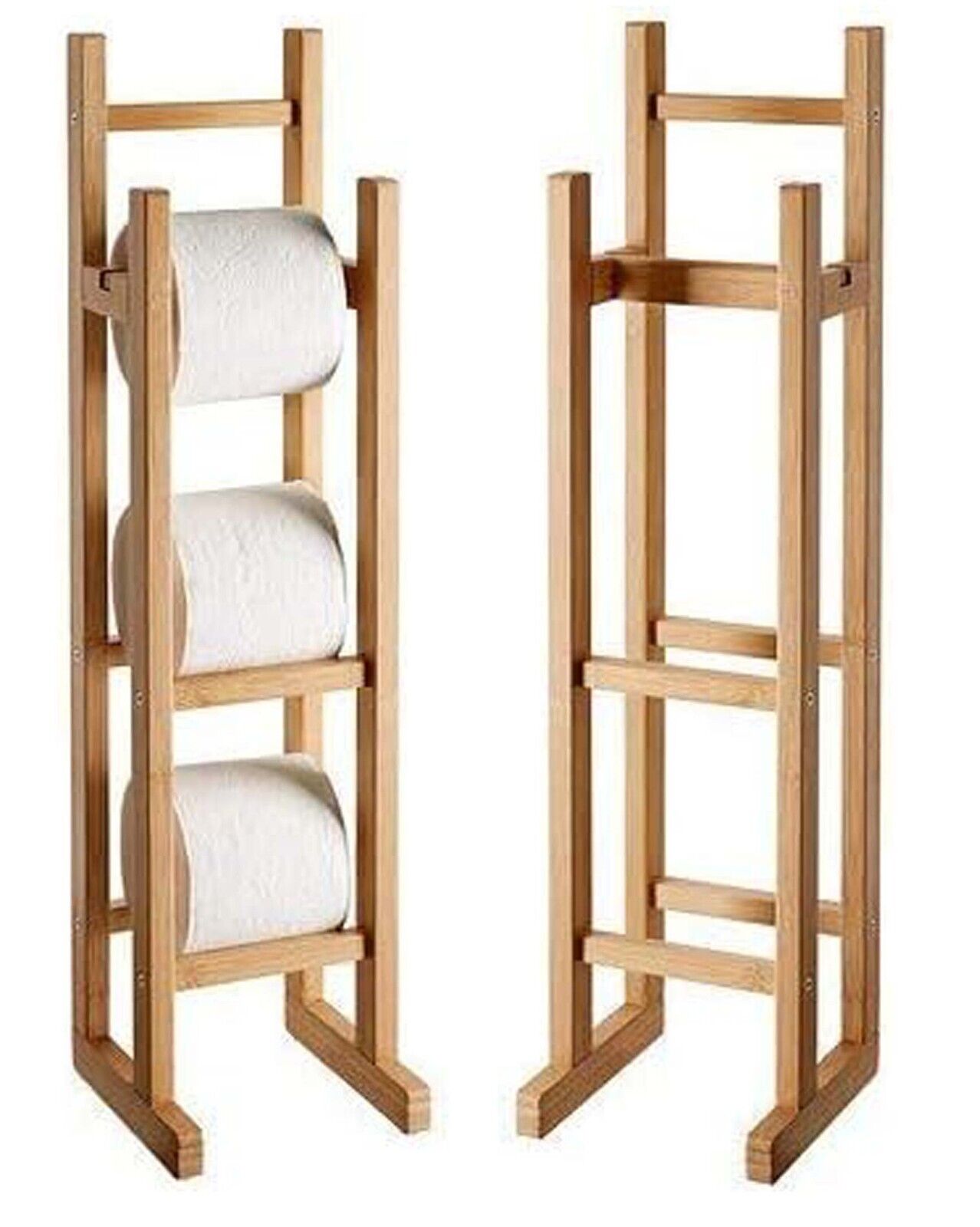 Bamboo Wooden Free Standing Toilet Roll Storage Holder Stand Classic Finish Home