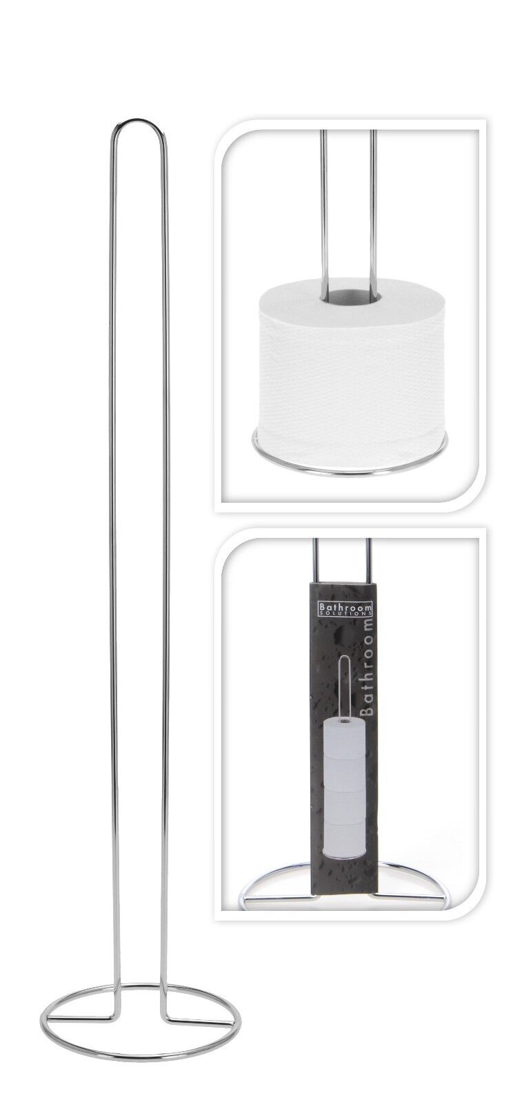 Silver Chrome Free Standing Spare Toilet Roll Holder Stand Toilet Roll Storage