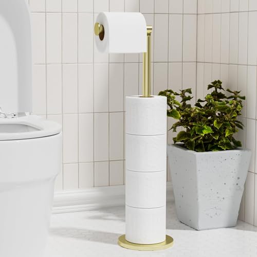 Toilet Roll Holder Free Standing - Gold Toilet Roll Holder Freestanding for Bathroom - Brushed Brass Toilet Roll Paper Holder Stand SHUNLI