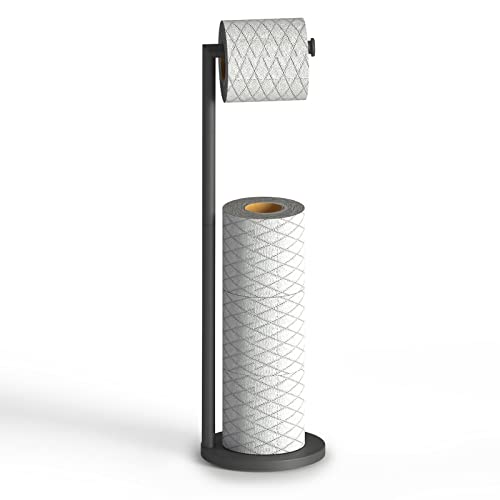 DECLUTTR Free Standing Bathroom Toilet Paper Holder Stand with Reserve, Stainless Steel Pedestal Tissue Roll Holder, Black