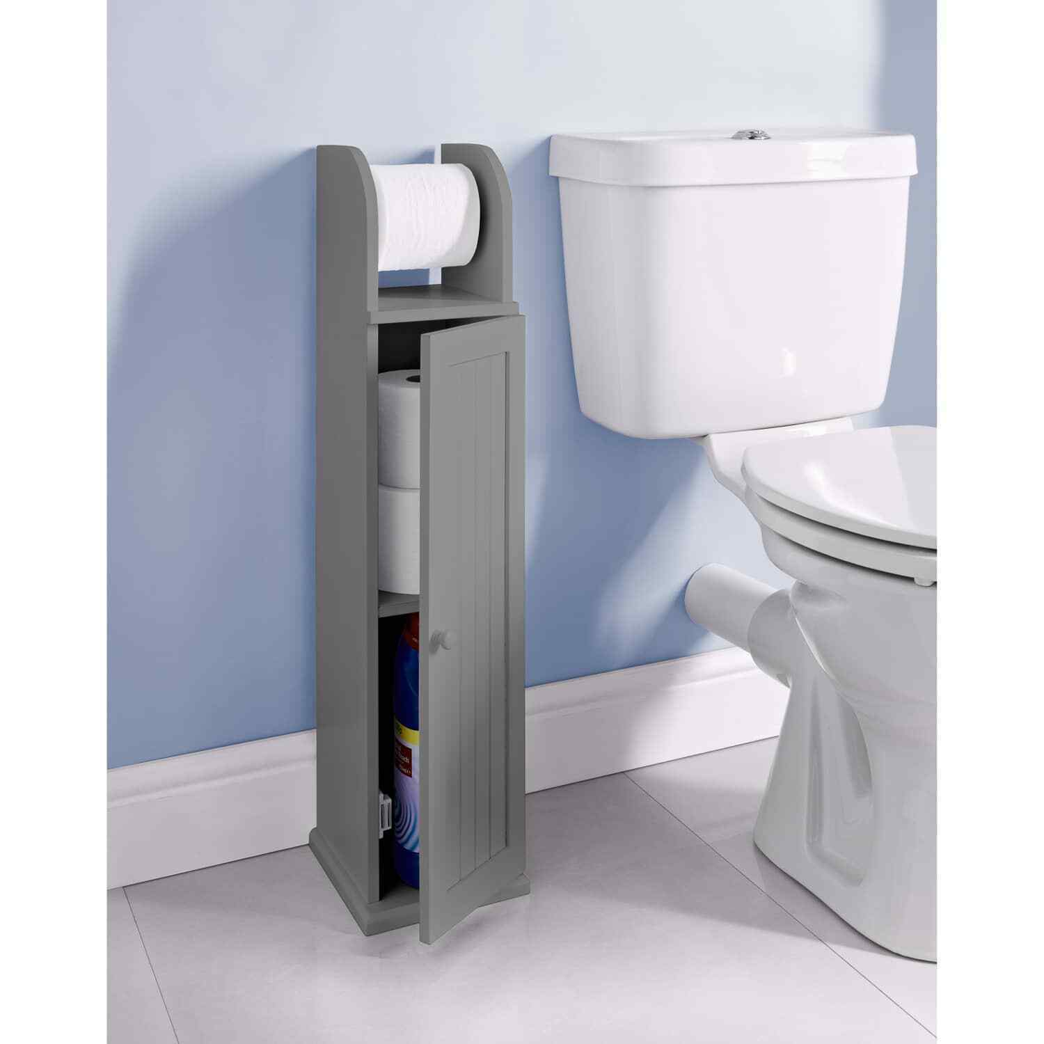 Free Standing Toilet Paper Roll Holder Stand Wood Bathroom Storage Cabinet Grey