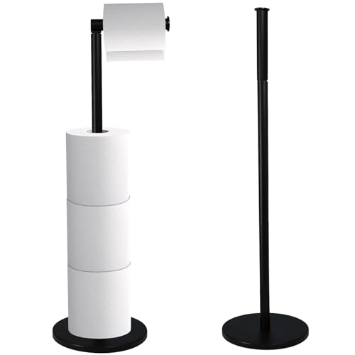 MOOACE Toilet Paper Holder Stand, Industrial Free Standing Bathroom Tissue Paper Roll Dispenser, Black