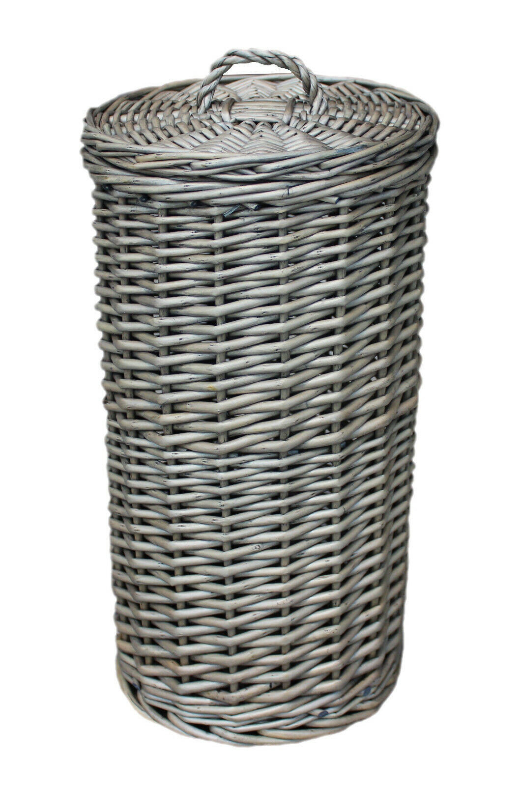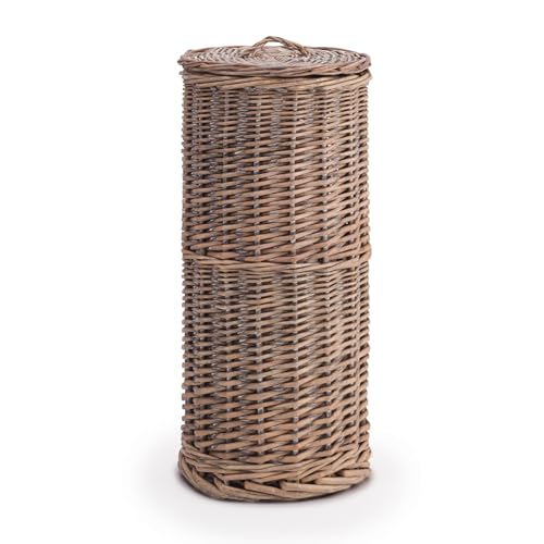 Woodluv Traditionally Hand Woven Rustic Free Standing Toilet Roll Paper Holder Stand Storage, Natural, Dia 18 cm x 40 cm height