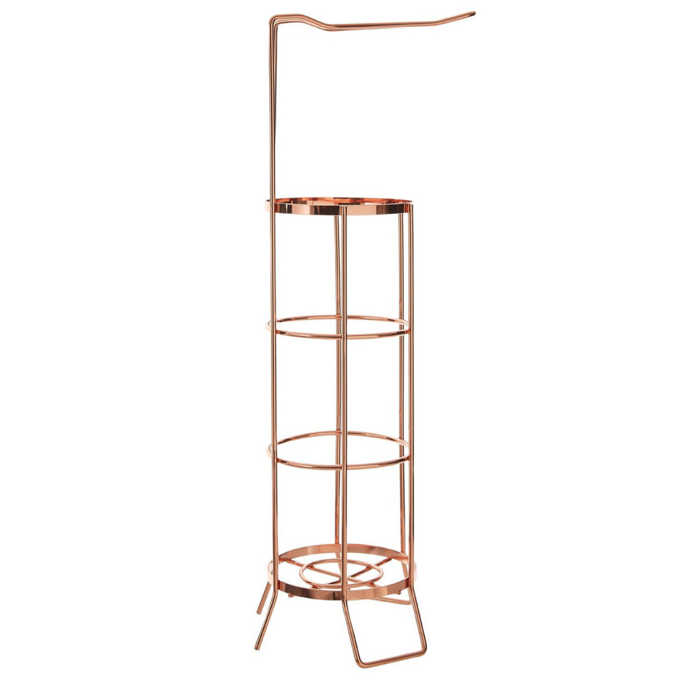 Rose Gold Free Standing Bathroom Toilet Roll Holder Stand Rack Holds Extra Rolls