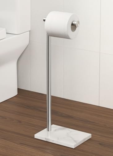 KES Marble Toilet Roll Holder Free Standing, Toilet Paper Holder with Natural Marble Base, Bathroom Toilet Roll Stand 18/8 Stainless Steel Brushed Finish, BPH284S1-2