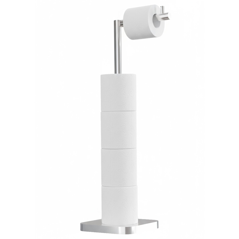 Free-Standing Toilet Roll Holder (with Reserve Function), Stainless Steel Toilet Paper Holder Stand for Spare Rolls Storage