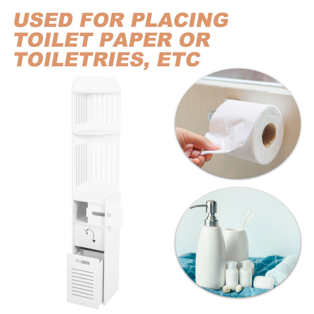 Free Standing Toilet Paper Roll Holder Stand Wood Bathroom Storage Cabinet White