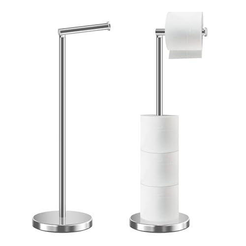 Topsky Free Standing Bathroom Toilet Paper Holder Stand for 3-4 Jumbo Rolls, Stainless Steel Rustproof Spare Tissue Paper Roll Dispenser Storage with Reserve Function (Silver)