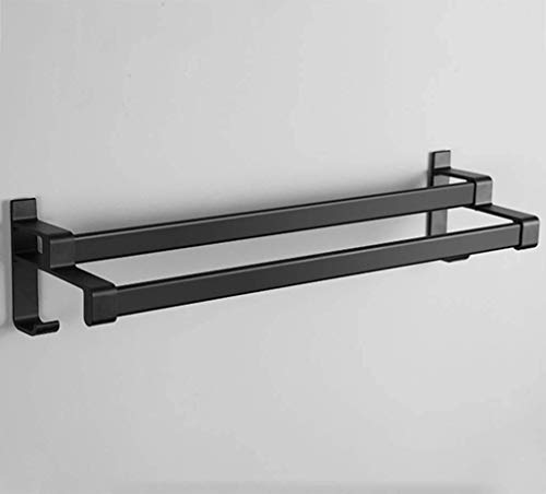 JZWCHQ Towel Rack,Punch-Free Towel Rails Towel Rack Wall Mounted with Hook for Kitchen Bathroom Hotel Office, Black Double-bar Space Aluminum 30cm
