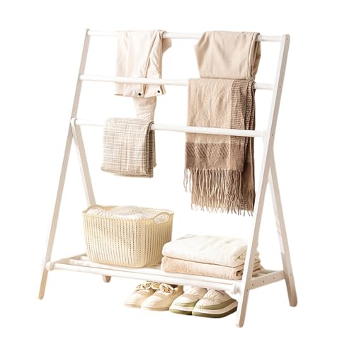 Labasuan Folding Towel Rack, 3 Tier Free Standing Wood Garment Rack with Shelves, Portable Bath Towel Holder Clothes Organizer Drying Rack, for Entryway & Bed Room(White,82cm/32.3in)
