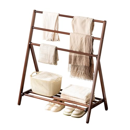 Labasuan Folding Towel Rack, 3 Tier Free Standing Wood Garment Rack with Shelves, Portable Bath Towel Holder Clothes Organizer Drying Rack, for Entryway & Bed Room(Walnut,102cm/40in)