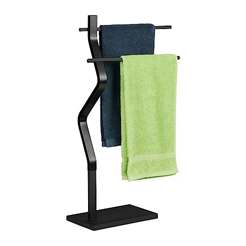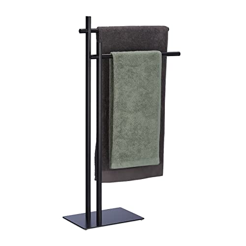Relaxdays Towel Rack, 2 Rails, Free-Standing, 85 x 43.5 x 20 cm, Bathroom Stand for Bath Towels, Steel & MDF, Black