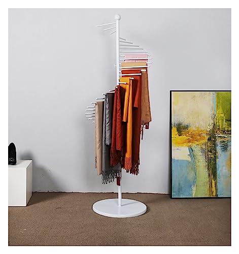 Heavy Duty Free Standing Silk Scarf Holder for Retail Stores/House, Rotating Multifunctional Modern Belt Towel Shawl Display Stand Rack, Large Capacity (Color : White, Size : Tall 170cm/67in)