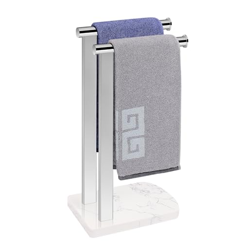 NearMoon Hand Towel Holder with Balanced Marble Base, SUS304 Stainless Steel Stand Towel Ring L Shape Hand Towel Rack Free-Standing Towel Bar for Bathroom Kitchen Countertop (Double Rod, Chrome)