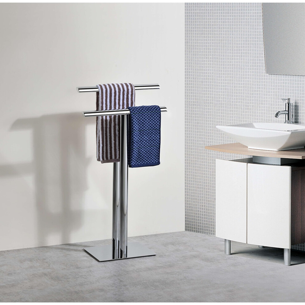 Relaxdays Towel Holder GRAO 85 x 40 x 20 Free-Standing Towel Stand with 2 Rails, 2 Arms & Chromed Towel Bars in Stainless Steel Look, Modern Bath...