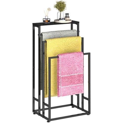 aleawol 3 Tier Black Freestanding Towel Rail, Metal Towel Rack Freestanding Towel Holder, Towel Tack Stand Towel Drying Rack Free Standing for Bathroom Accessories Organizer Bath & Hand Towels