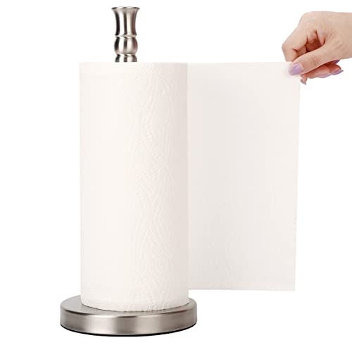 Paper Towel Holder Stand Countertop with Heavy Weighted Stainless Steel Base, Free Standing Paper Towel Holder (Brushed Nickel)