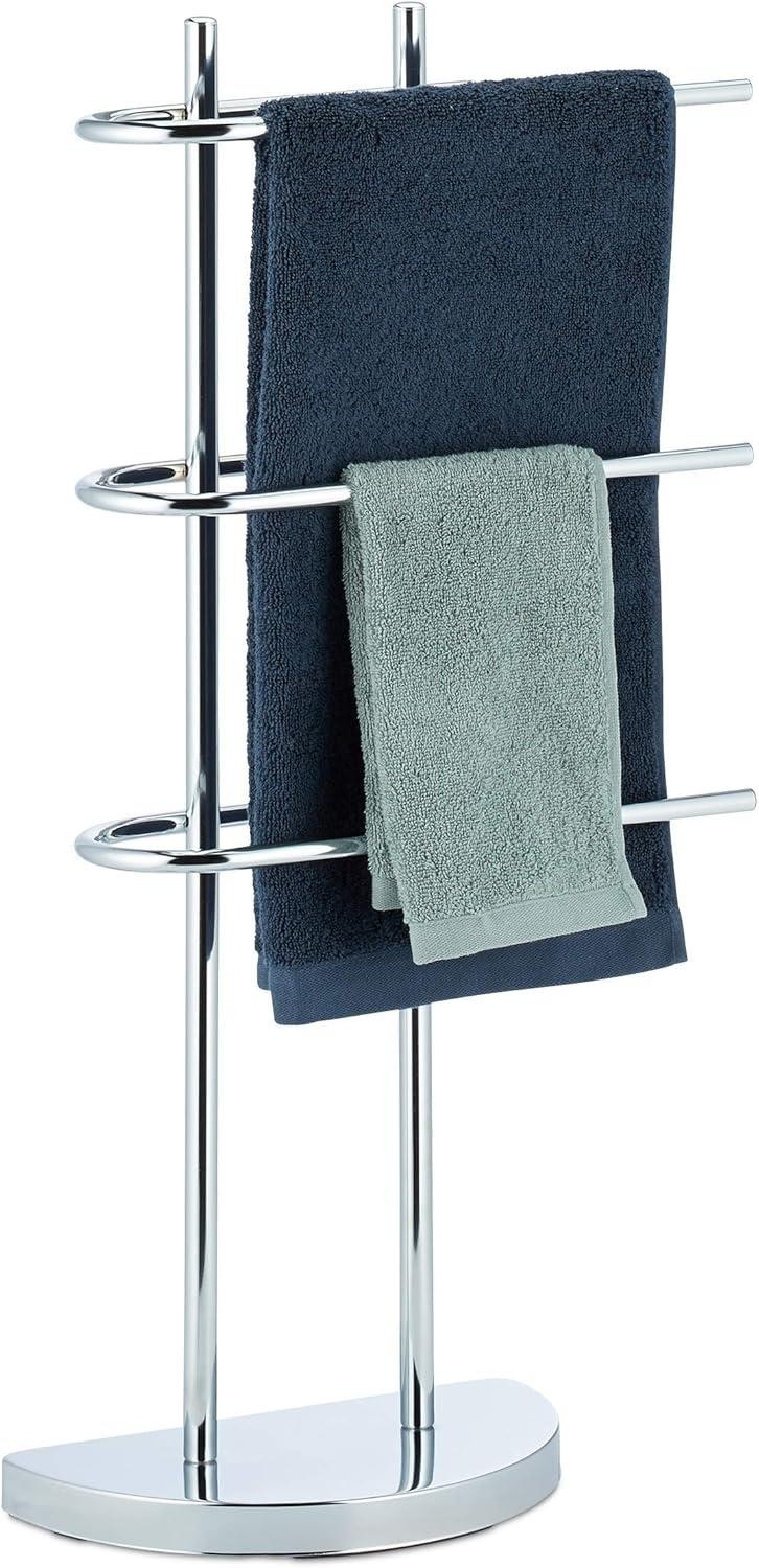 Relaxday Towel Holder Stainless Steel With Three Rails 86 x 50 x 20 cm Free Standing Chromed Surface Varying Heights Modern Style Bathroom Bath Shower Towel Rack Towel Stand Metallic Silver