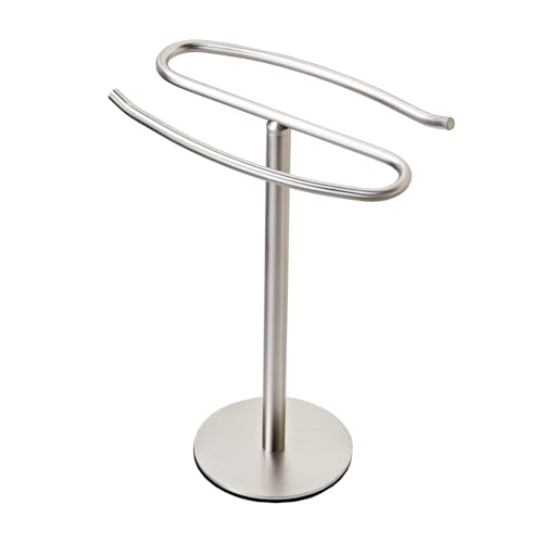 Hand Towel Holder Stand with Heavy Stainless Steel Base, T-Shape Towel Rack, Free-Standing for Bathroom Vanity Countertop, 304 Stainless Steel (Brushed Silver)