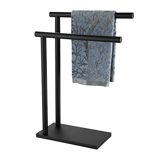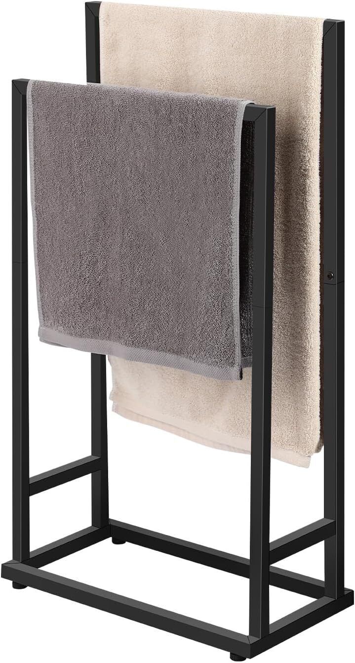 JELUTE Free standing Towel Rail, Holder,Stand and Towel Drying Rack with 2-Tier Towel Stand Rail for Bathroom & Hand Towel, Black