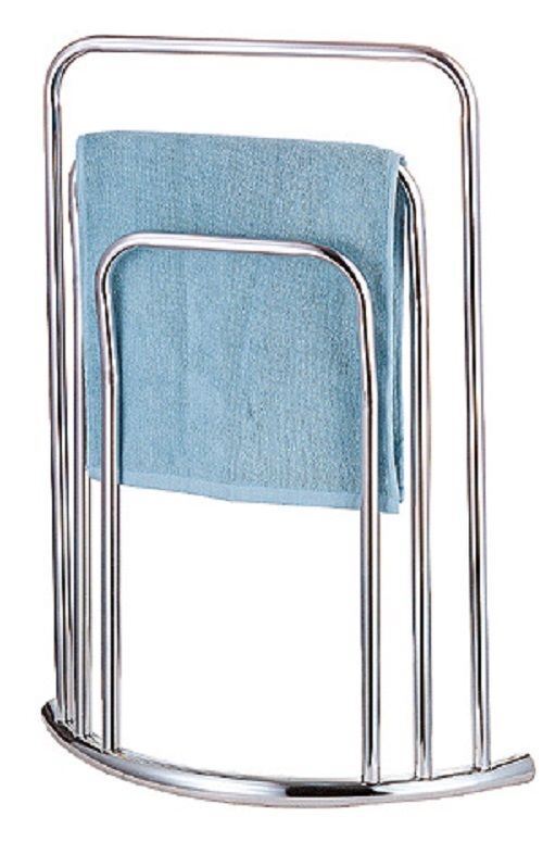 NEW & BOXED CHROME 3 TIER BOW CURVED FREE STANDING TOWEL STAND RACK RAIL