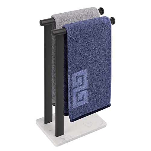 NearMoon Hand Towel Holder with Balanced Marble Base, SUS304 Stainless Steel Stand Towel Ring L Shape Hand Towel Rack Free-Standing Towel Bar for Bathroom Kitchen Countertop (Double Rod, Matte Black)