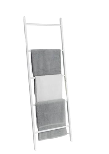 GGYTMQL Exquisite Bathroom Shelves Bath Towel Ladder, Metal Wall-leaning Blanket Rack Ladder with 6 Bars, Free Standing Leaning Decorative Storage Ladder, Home Accessories Organizer Stand white