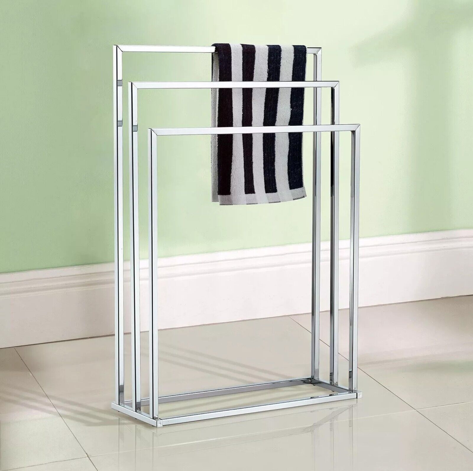 Three Tier Towel Holder Free Standing Chrome Bathroom 3 Rail Rack Stand New