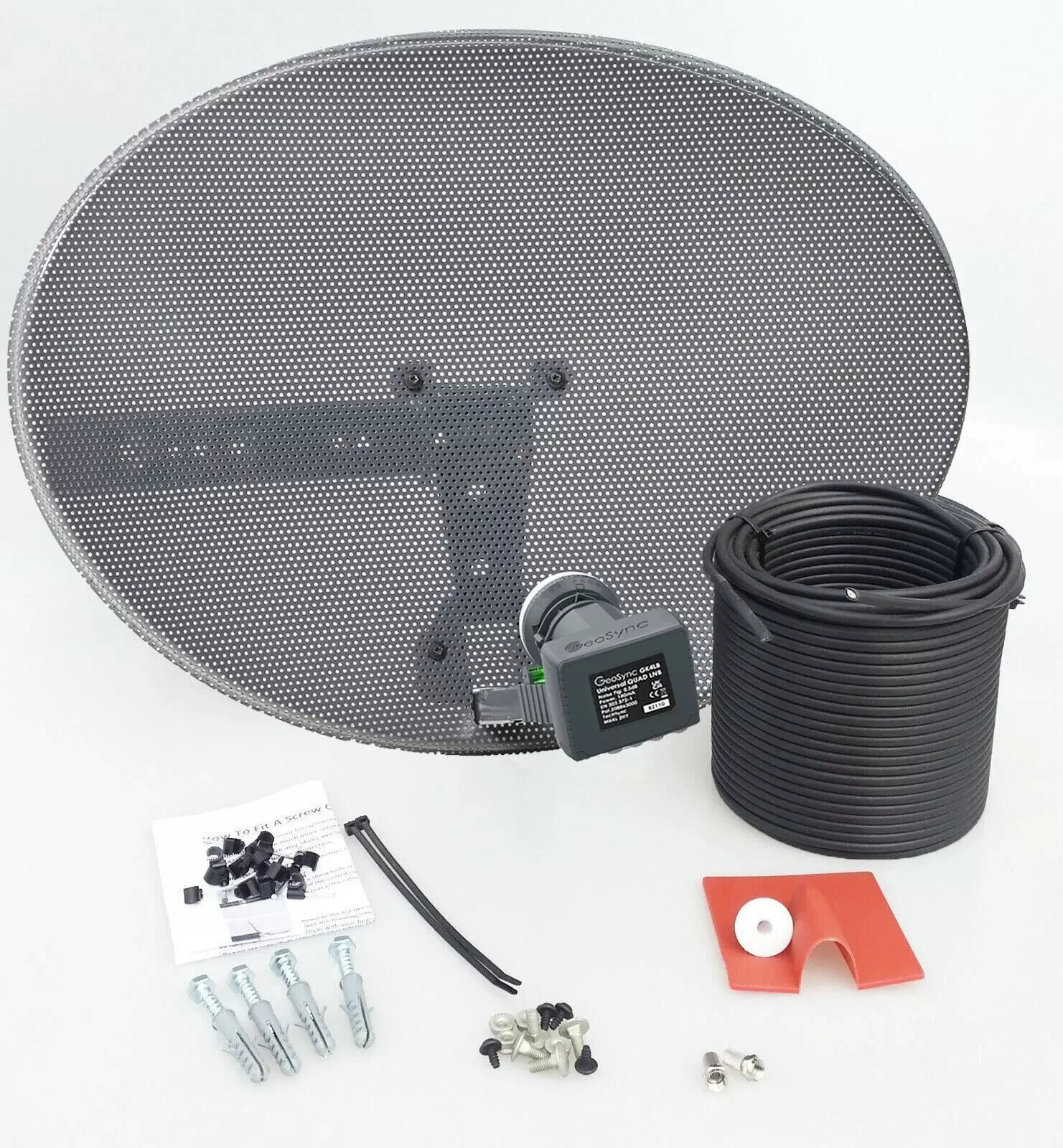 60cm Satellite Dish & Full 20m Single Black Install Kit for Sky HD / Freesat HD