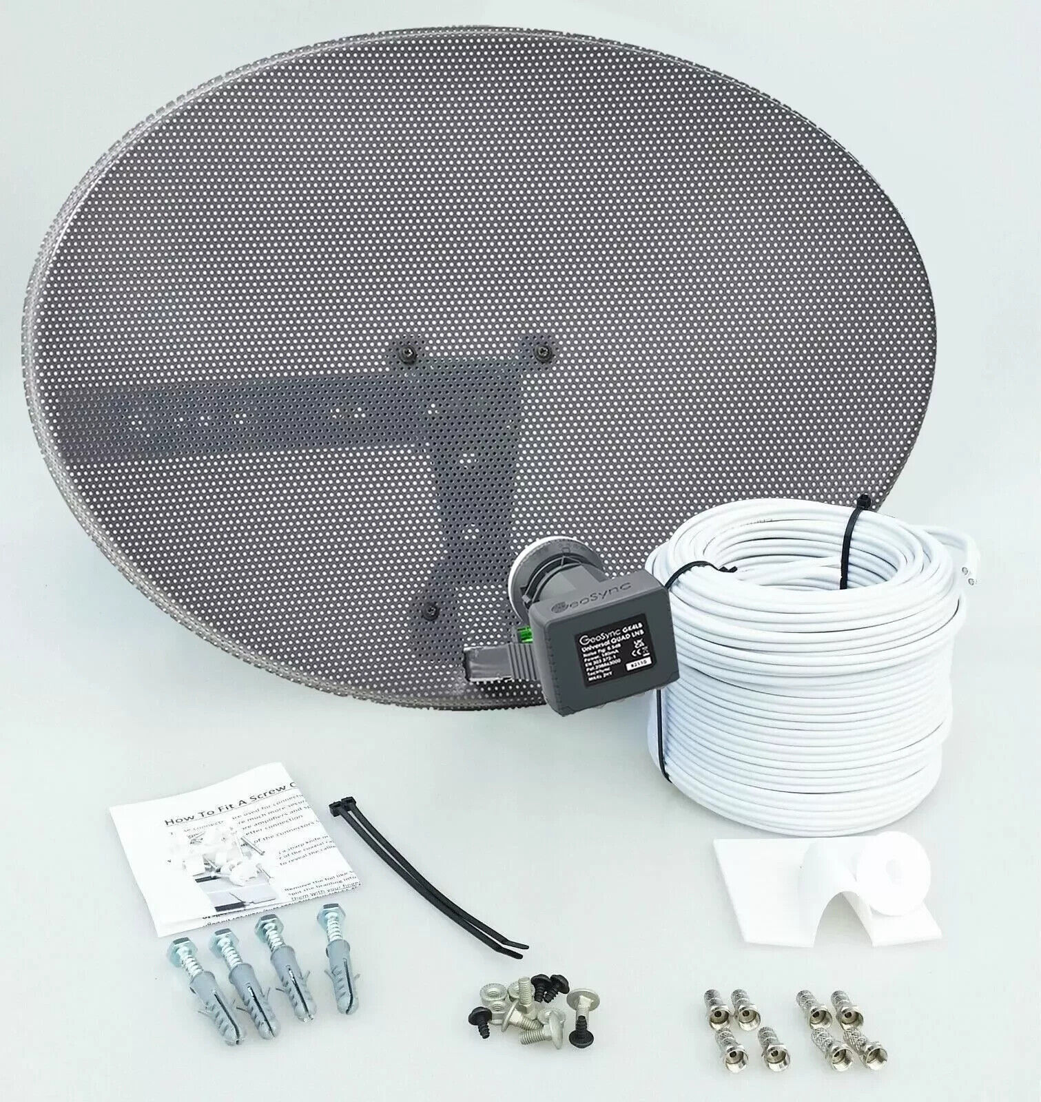 60cm Satellite Dish & Full 35m Single Black Install Kit for Sky HD / Freesat HD