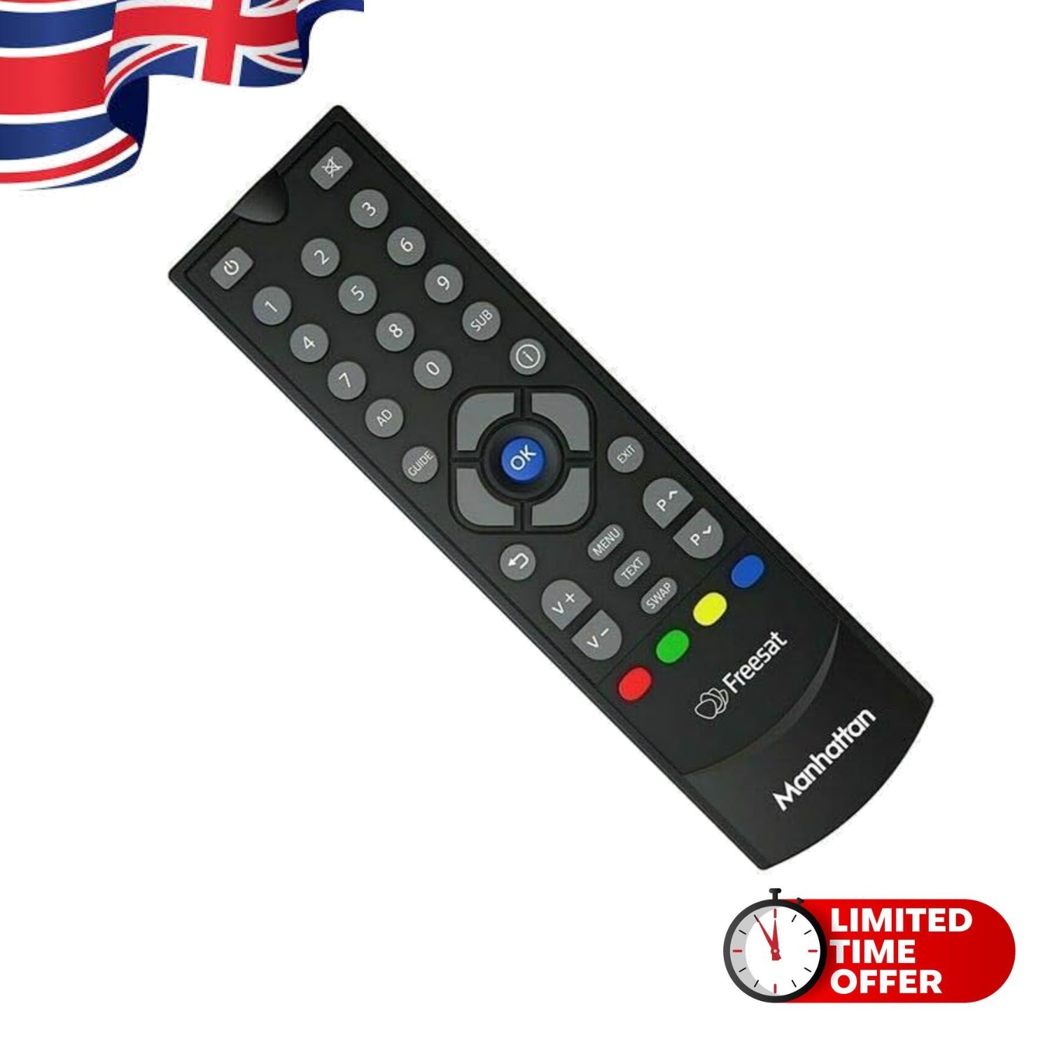 Ergonomic Manhattan SX Freesat HD Remote Control for Set Top Boxes - 10m Range