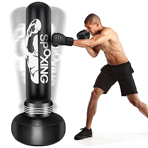 Heavy Punching Bags for Adults - 69" Freestanding Boxing Bag with Stand for Men Training MMA Muay Thai Fitness - Ideal Standing Inflatable Kickboxing Bag