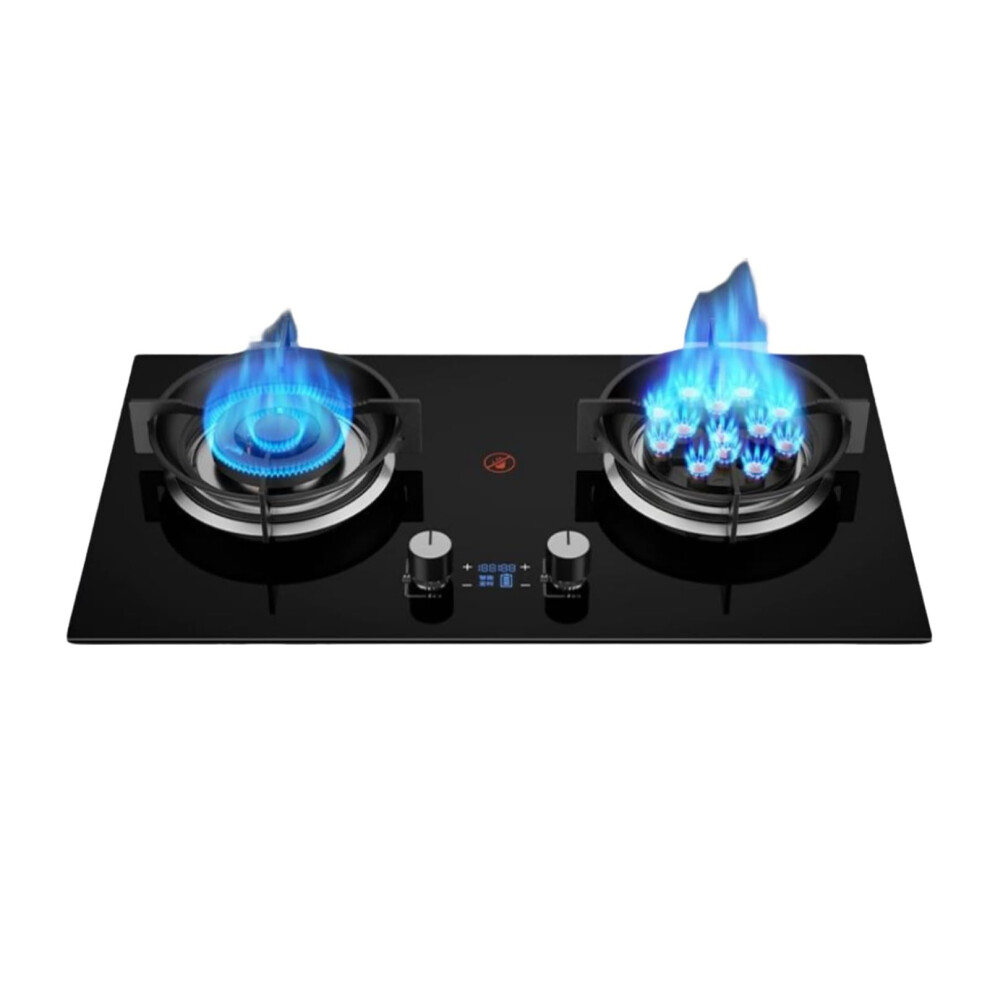 75cm Gas Stoves,2 Burners Gas Hob,Tempered Glass Freestanding Cooktop,5.2kw 9-cavity High Fire Timer,with Flameout Protection,for Home(NG)