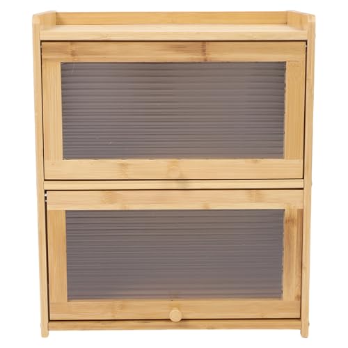 BYRTJSWX Bamboo Kitchen Countertop Cabinet with Sliding Glass Doors, Adjustable Shelf Organizer for Pantry, Freestanding Storage Cabinet for Dining Room Kitchen(Natural,45x34x28cm/18x13x11in)