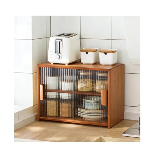 BYRTJSWX Bamboo Kitchen Countertop Cabinet with Sliding Glass Doors, Adjustable Shelf Organizer for Pantry, Freestanding Storage Cabinet for Dining Room Kitchen(Brown,45x34x28cm/18x13x11in)