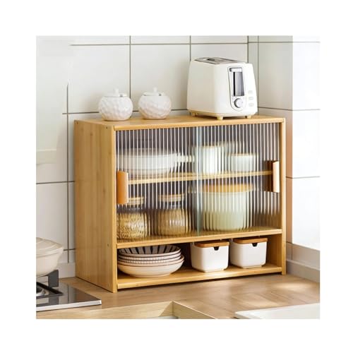 BYRTJSWX Bamboo Kitchen Countertop Cabinet with Sliding Glass Doors, Adjustable Shelf Organizer for Pantry, Freestanding Storage Cabinet for Dining Room Kitchen(Natural,67x34x28cm/26x13x11in)