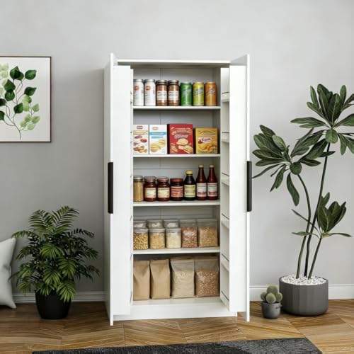 FEBORY Tall Freestanding Pantry Cabinet for Kitchen, White Storage with Doors & Shelves, 31.5" Wide Organizer for Dining & Living Room