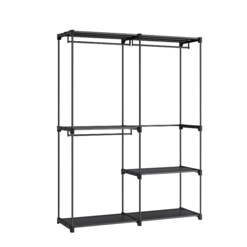 MeowPets Clothes Rack Portable Closet, Freestanding Wardrobe Organizer with Multiple Shelves and Hanging Rods, Storage Solution for Bedroom Entryway or Laundry Room (Black)