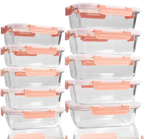 TempFoo Glass Containers with Lids, 10 Pack Airtight Glass Meal Prep Containers, Glass Food Storage Containers, Reusable, Stackable, Microwave, Oven, Freezer and Dishwasher - Pink